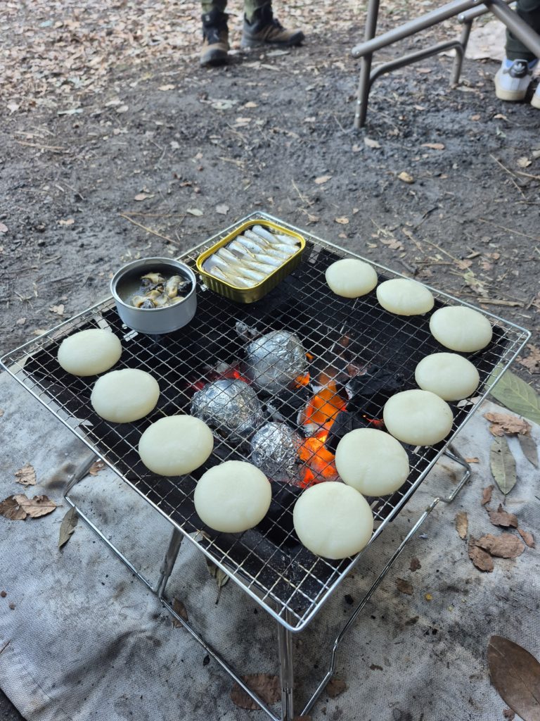 - 防寒着、マイコップ(あれば)、折り畳みイス(あれば)、焼いてみたい食材