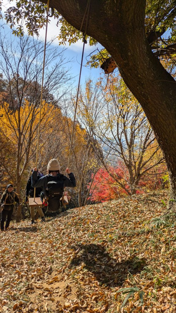 観察の森を通って飯盛山へ。途中展望が開け、森のブランコがあります。