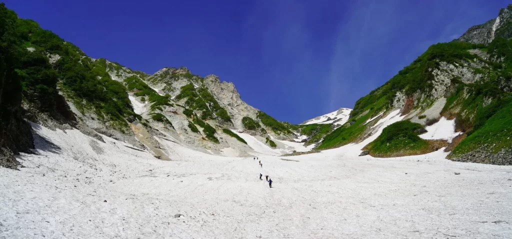 幅100m、長さ3.5kmに及ぶ広大な白馬大雪渓は、日本三大雪渓のひとつです。