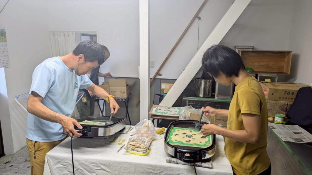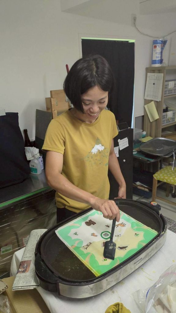 さらに、タイチとさやかさん自身も実際に作業に参加し、みつろうを溶かして布に染み込ませる工程を体験!その一枚一枚に、私たちの思いも込められています。
